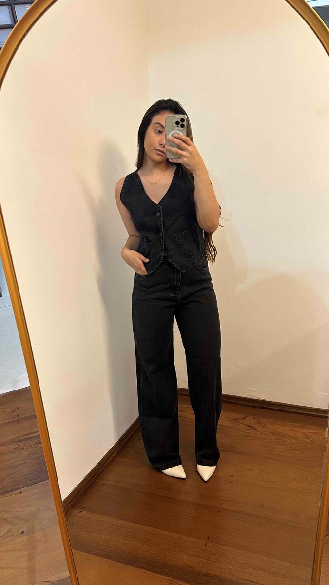 Calça jeans preta estonada