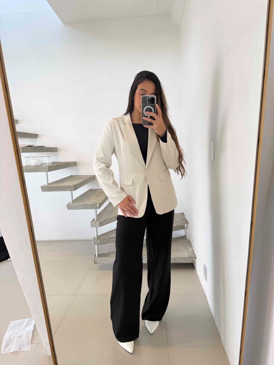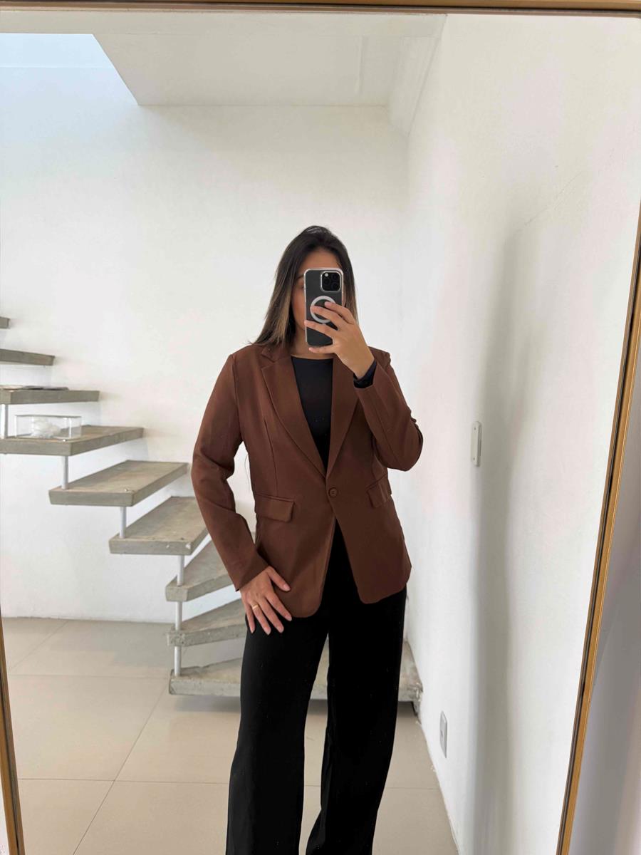 Blazer estruturado com forro e ombreira.