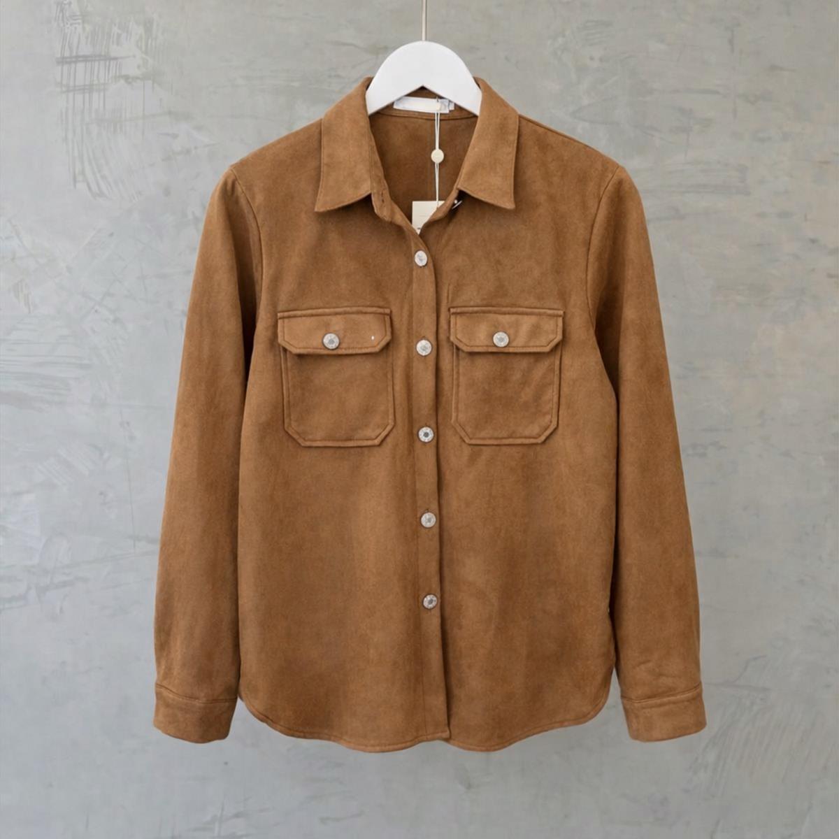 Camisa confeccionada em tecido de suede (camurça), tendência em 2026. Tecido leve e confortável, sua forma não é over, caso queira uma proposta maior, optar por um tamanho a mais.
